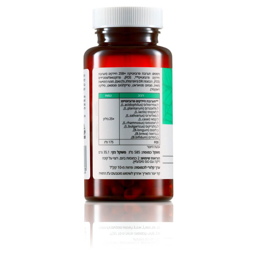 תערובת פרוביוטית ייחודית, 25 מיליארד חיידקים מ-10 זנים שונים בתוספת סיבים להפחתת הנפיחות הבטנית, לאנרגיה גבוהה לבטן נינוחה ועיכול קל וטוב.